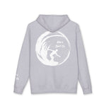 This heavy hoodie feels like a worn-in companion from the first pull-over. Thick, cozy fleece hugs you on cool mornings and the roomy cut leaves space for a tee or flannel underneath. The design — a single-tone, hand-brushed wave with a small surfer silhouette — reads like a quiet badge of days spent chasing surf and sunrise. A small chest mark and a larger back graphic keep the look minimal while keeping the vibe unmistakably coastal and lived-in. Wear it to the early lineup, on foggy drives to the beach, or when you’re warming up with friends after a cold session. It settles into your rotation and becomes the one you reach for when you want comfort that still says where you belong.